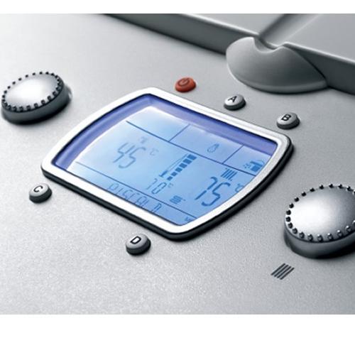 Наличие в котле встроенной погодозависимой автоматики означает, что при дополнительной комплектации котла датчиком уличной температуры температура теплоносителя будет зависеть от температуры на улице (опция, арт. 3.014083).