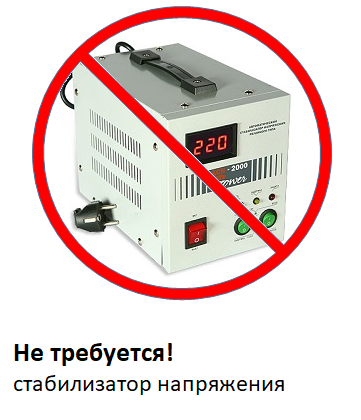 Не требуется установка внешнего стабилизатора напряжения или реле.