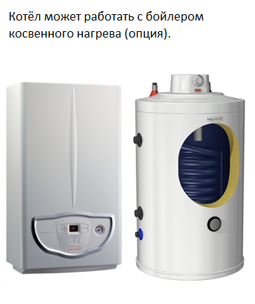 – Котёл готовит горячую воду при подключении бойлерка косвенного нагрева (опция).