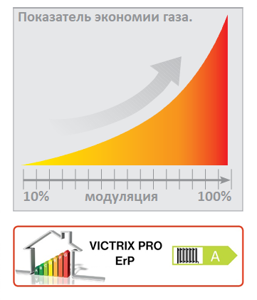 Отличительной особенностью котлов Victrix PRO 2 ErP является их возможность работать в каскаде из двух котлов без дополнительной автоматики (встроена в котёл), что существенно экономит средства.
