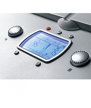 Например: Мощность котла – 28 кВт. Встроенный бойлер емкостью 60 литров это означает, что у Вас в запасе всегда имеется 120 литров готовой к потреблению воды с температурой 45°С (двойной объем после смешивания с холодной водой). При этом время нагрева воды в бойлере от 20 до 65°С составляет менее 6 минут. 6 минут – и у Вас снова 120 литров воды в запасе! Конечно, котел продолжает работать в проточном режиме, когда вода в бойлере закончится и обеспечивает горячей водой так долго, как требуется. В нашем примере мы получим 13,3 литра в минуту.